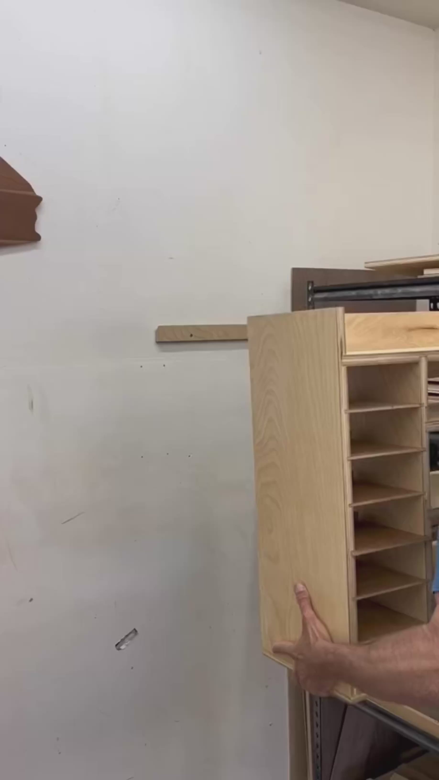 Dedicated shelves for sanding discs, keeping everything organized and within reach.