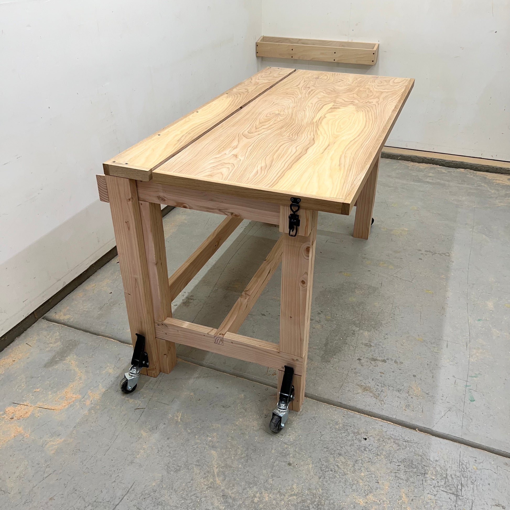Move the bench when you need to — then retract the wheels to plant the bench firmly on the ground for wobble-free work.