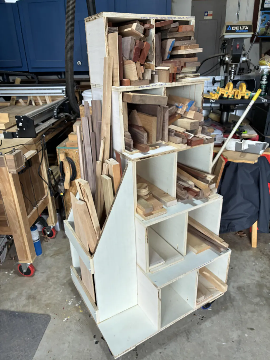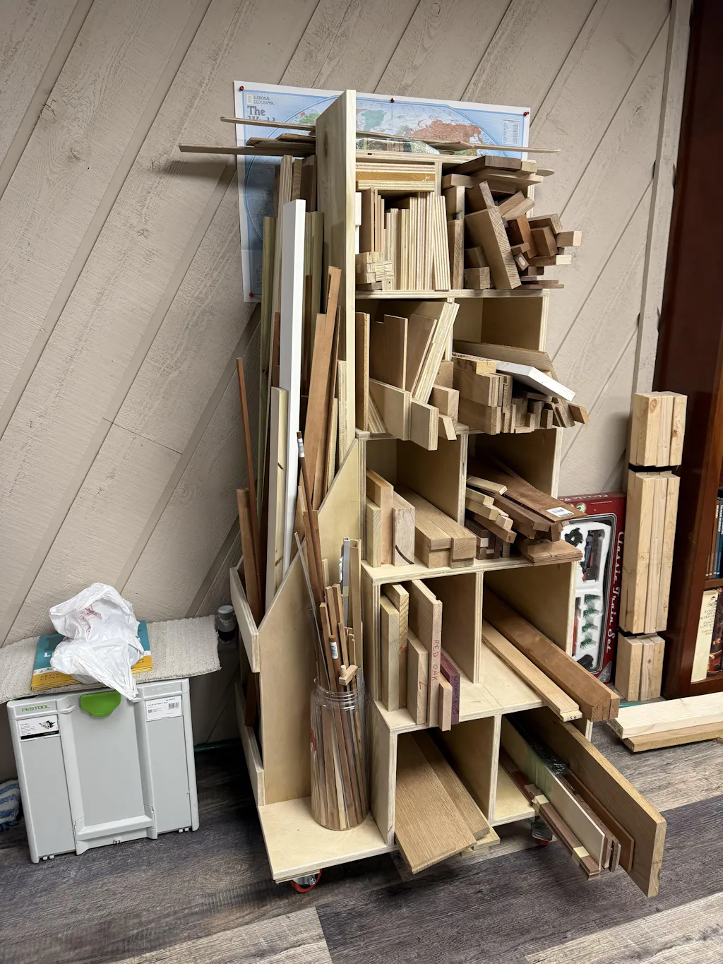 - Scrap Wood Storage: 5 sections of scrap lumber storage with 11" (280 mm) tall cubbies.
