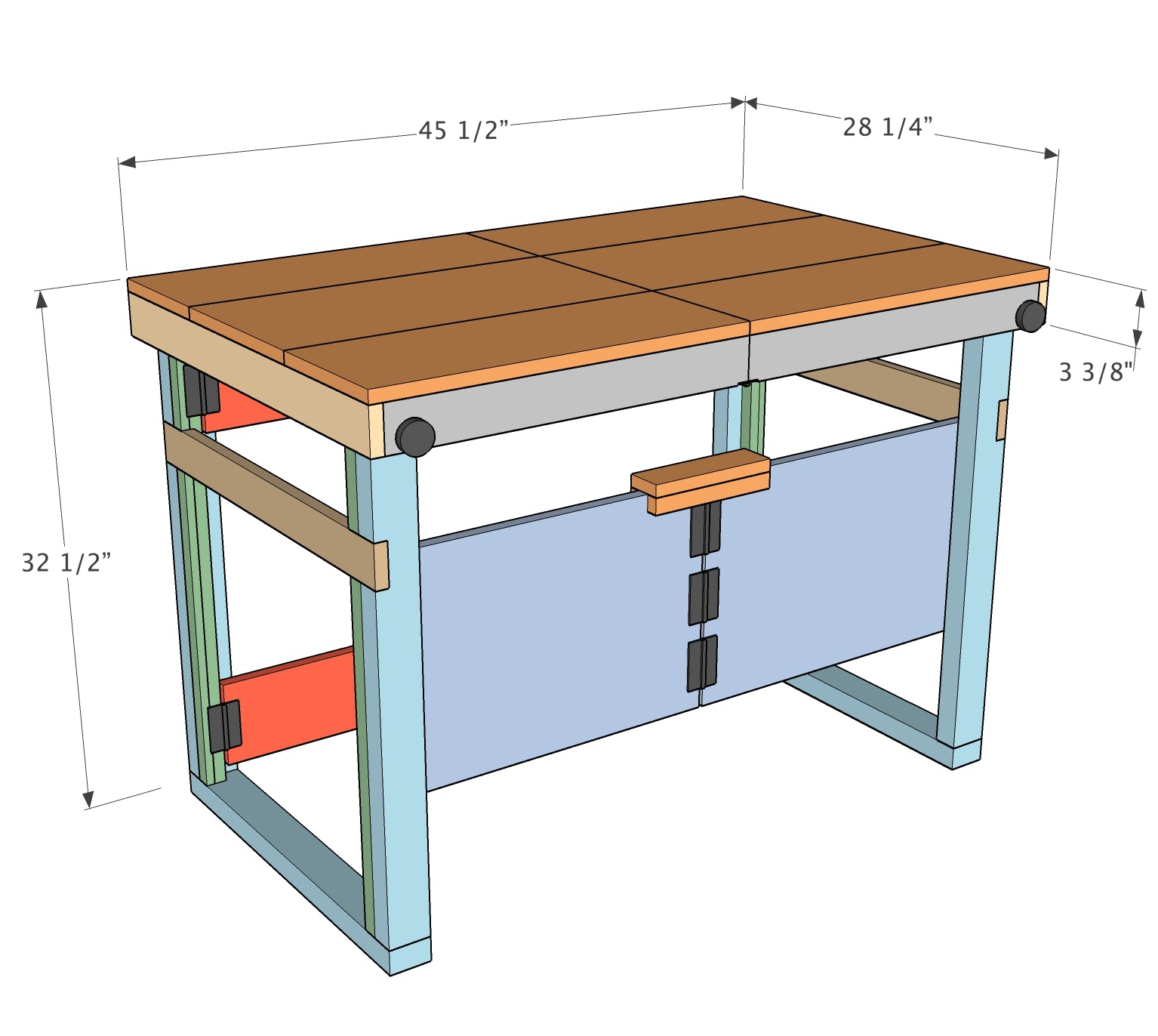 Weight (with 3/4” plywood table top): 67.5 lbs